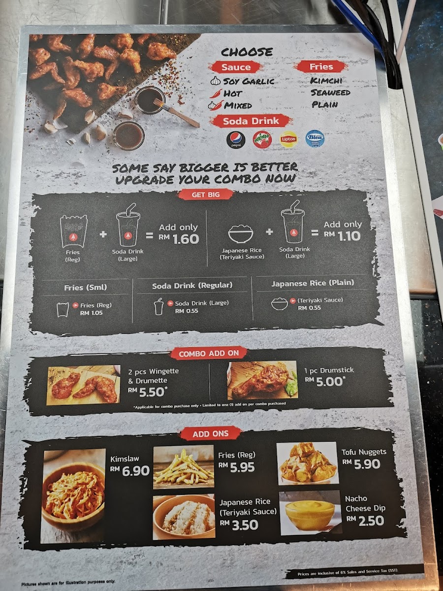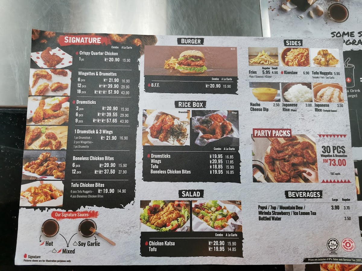 The menu at 4Fingers Crispy Chicken Ipoh Garden offers a selection of fast food items primarily focused on crispy fried chicken dishes. It is structured into several distinct categories to cater to different meal preferences and group sizes.